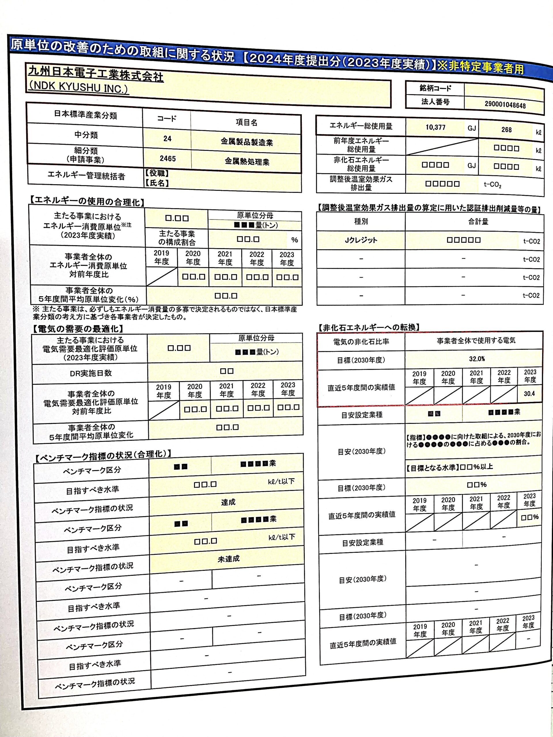 原単位の改善のための取組に関する状況